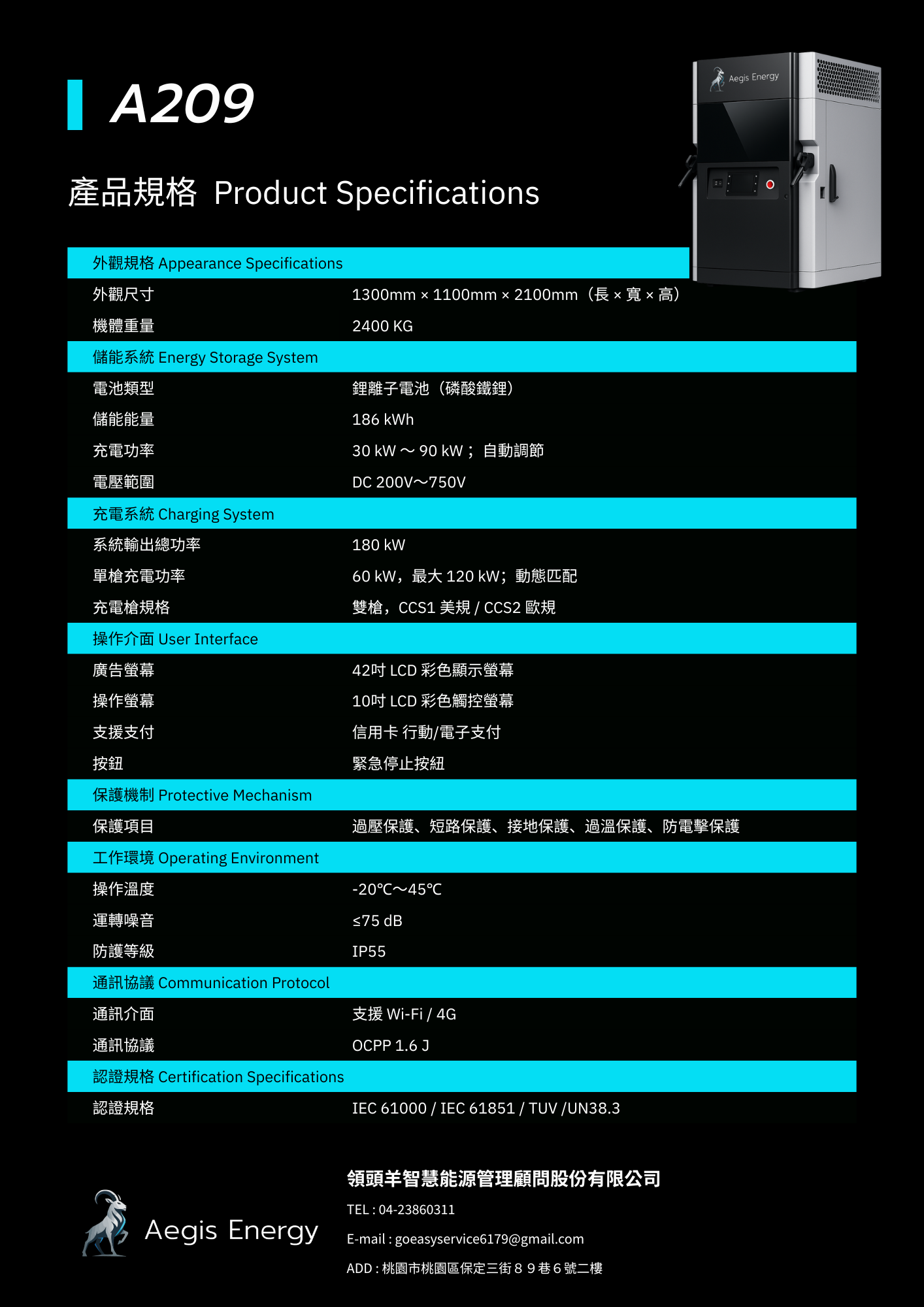 【 Aegis Energy 】6S+EDR智慧系統 209KW 充電儲能一體機